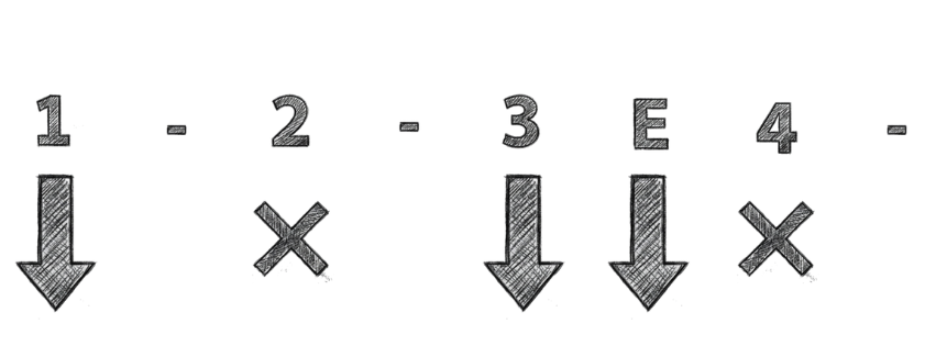 O “e” logo após o 3 é o momento exato em que sua mão sobe no ritmo.